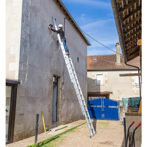 Echelle coulissante à corde professionnelle 3 plans 3x14 échelons 10m en alu Hailo Trio